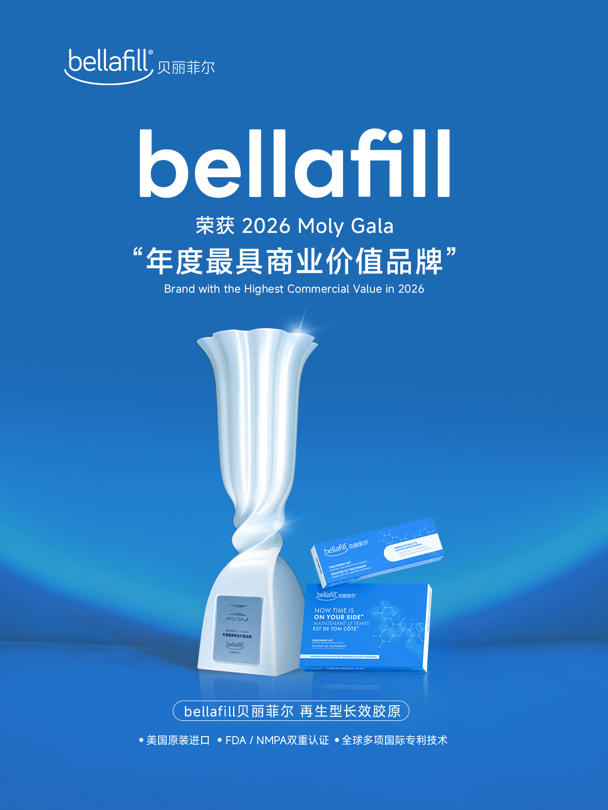 Bellafill贝丽菲尔凭借卓越的市场表现与强大的品牌影响力,荣获2026Molygala“年度最具商业价值品牌”。